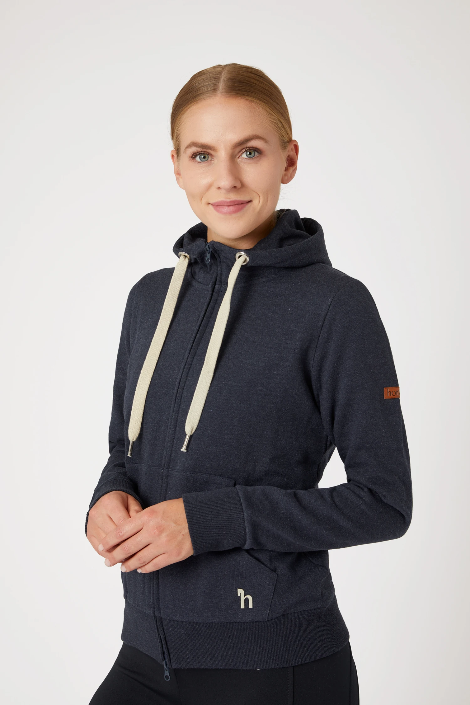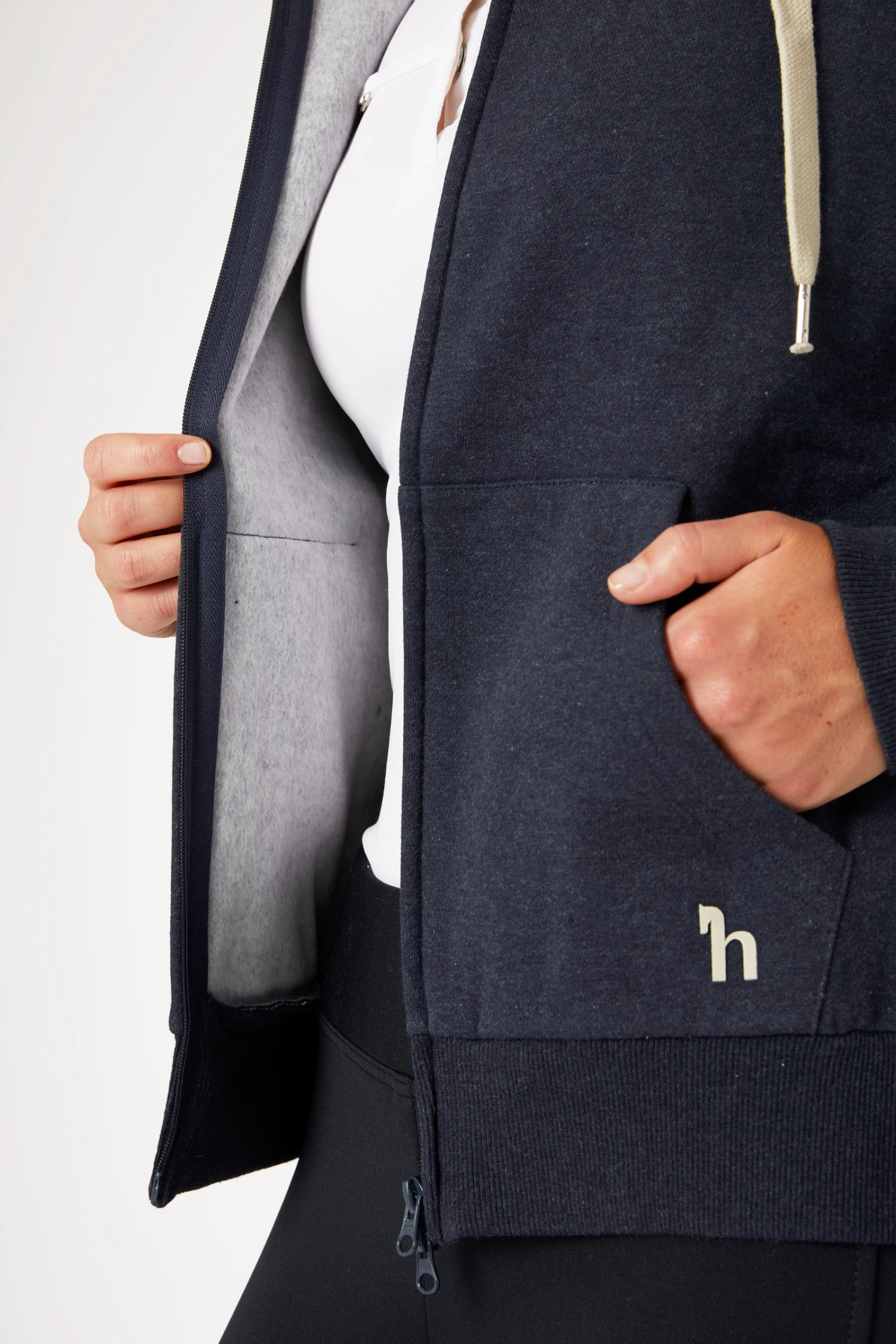 Die Horze Adena Sweatshirtjacke ist aus weichem Baumwoll-Mix hergestellt. Gerippte Bündchen und Saum sowie die verstellbare Kapuze sorgen für Wärme und Komfort. Die Kängurutaschen sind praktisch. Klassische Farben und eine bequeme Passform passen perfekt zu deiner Reitgarderobe.