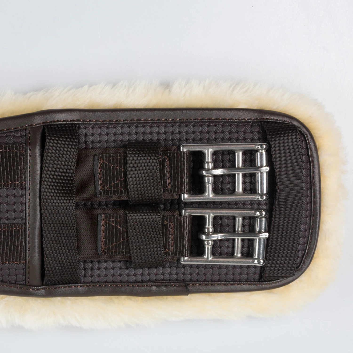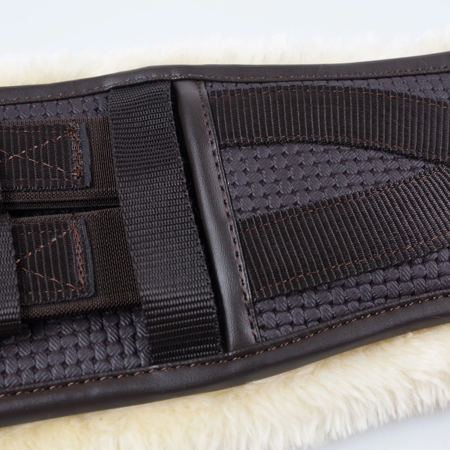 Dressurgurt mit extra Fleece-Futter für mehr Komfort beim Training. Die elastischen Enden auf beiden Seiten machen das Gurten einfach. Die klassische Kombination von künstlichem Lammfell und Leder sorgt für einen perfekten Look.