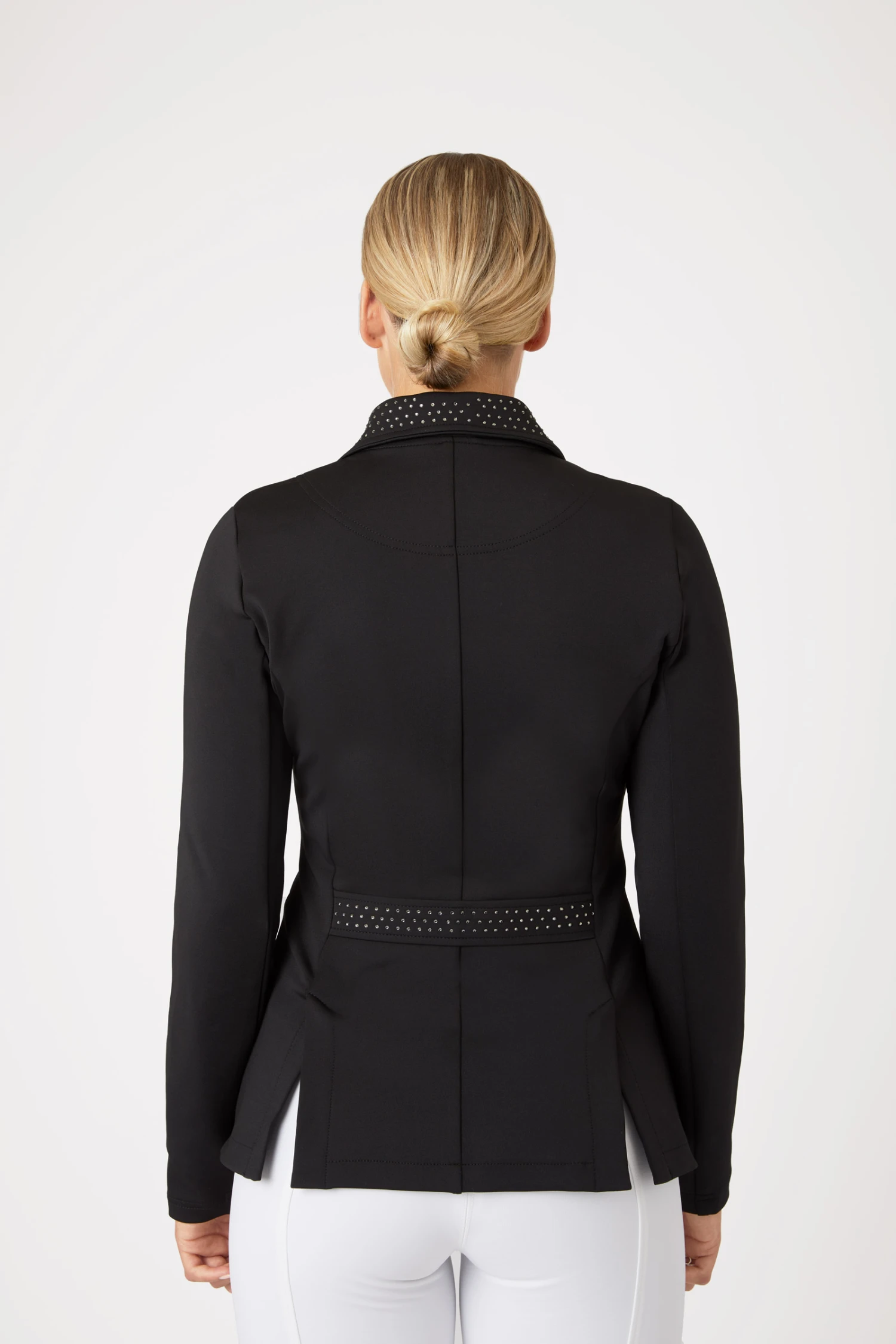 Die dezenten Kristalle machen dieses Jacket zu einem Blickfang, ohne zu auffällig zu sein. Eine kürzere Vorderseite und das dehnbare Material machen das Reiten angenehm. Die tadellose Qualität und der optimale Schnitt lassen dich professionell aussehen und geben dir gleichzeitig die nötige Bewegungsfreiheit.