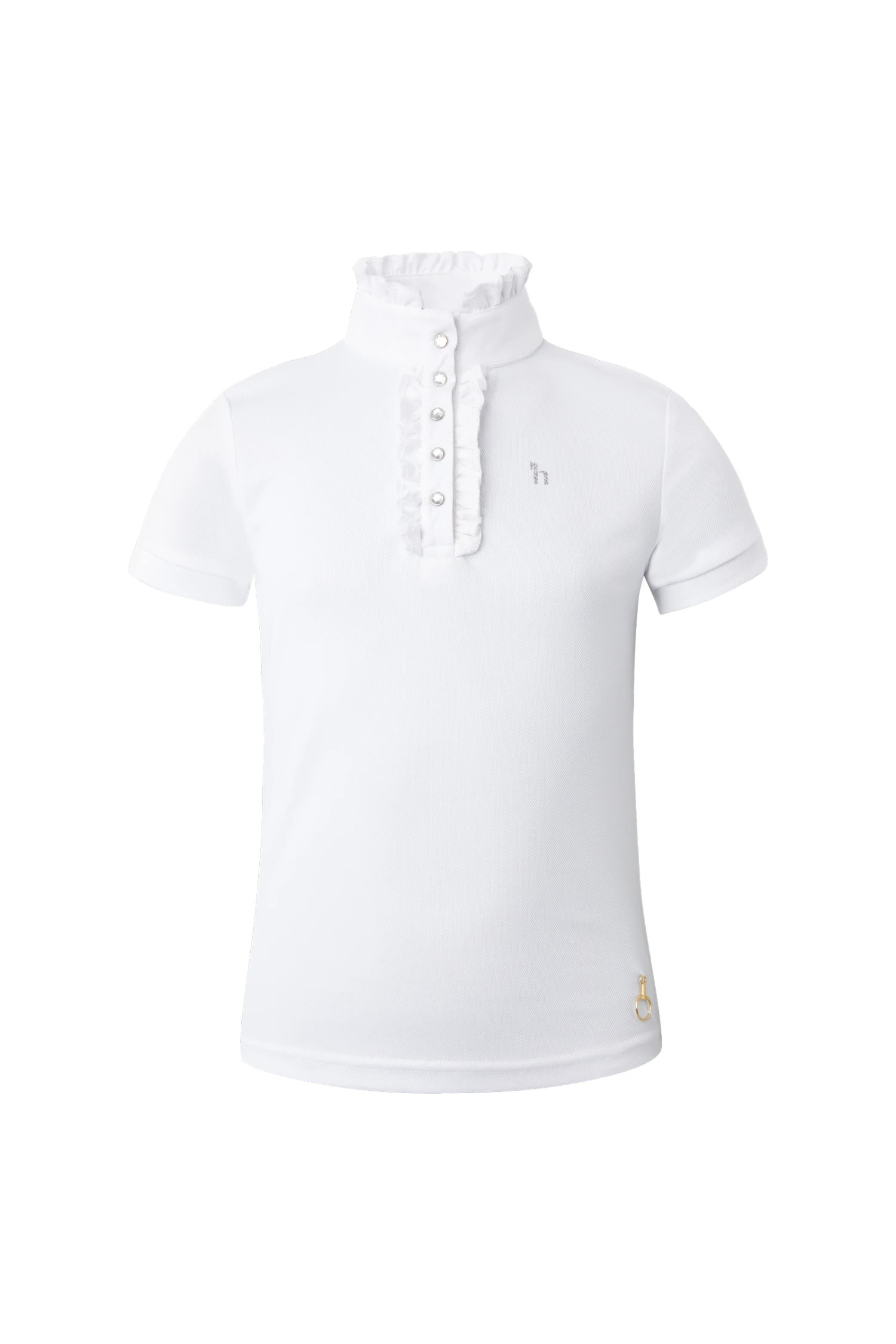 Das Horze Christel Kinder Turniershirt ist die perfekte Wahl für ein klassisches Turnieroutfit. Die Rüschendetails am Kragen und der Passe haben einen traditionellen Look, während Kristallknöpfe und ein Logo auf der Brust dem Turnieroutfit deines Kindes das gewisse Extra geben. Das atmungsaktive, leichte Material hält junge Reiter kühl, trocken und sorgt für Wohlbefinden.