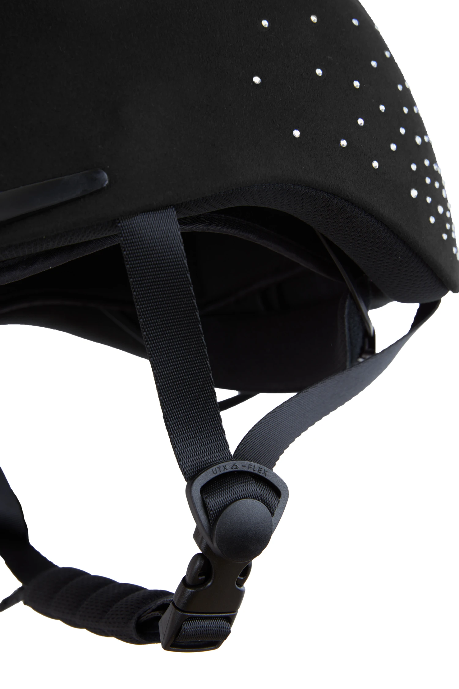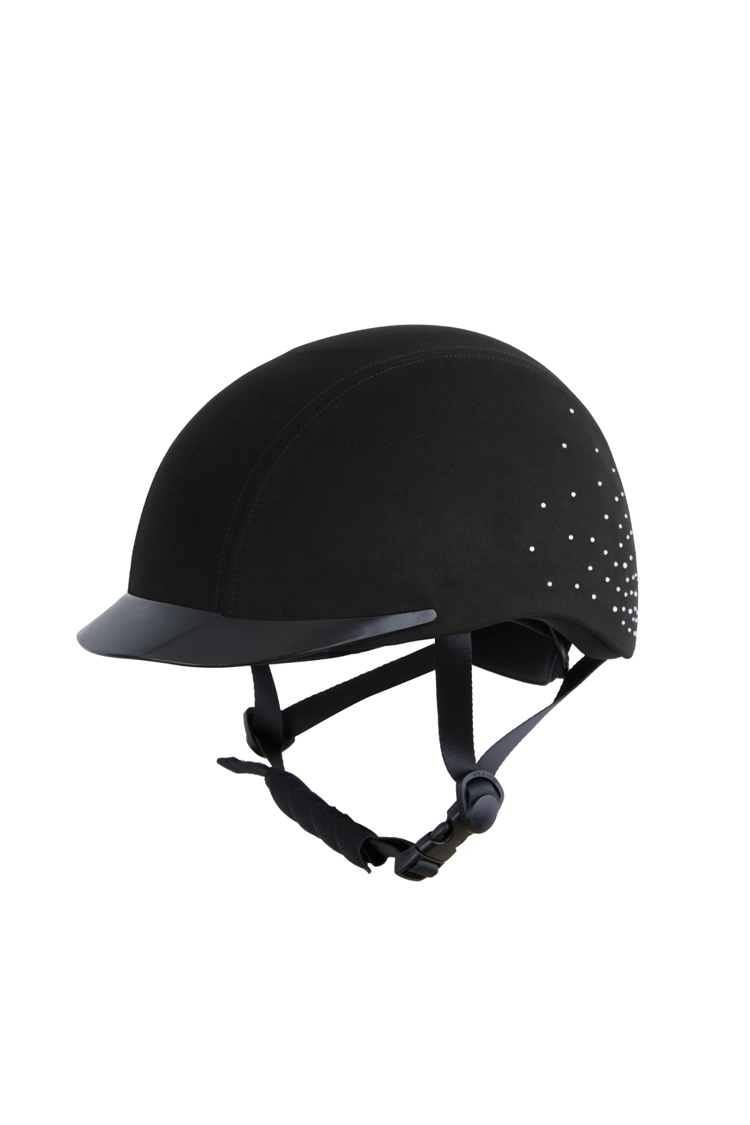 Dieser neue Helm ist mit weichem Samtstoff überzogen und mit schönen Strasssteinen verziert, die deinem Outfit einen Hauch von Glamour verleihen. Das atmungsaktive Futter sorgt für ein bequemes Tragegefühl. Der Schnallenverschluss ist dank eines zusätzlichen Klettverschlusses besonders angenehm. Stelle den Helm auf deine perfekte Größe ein.