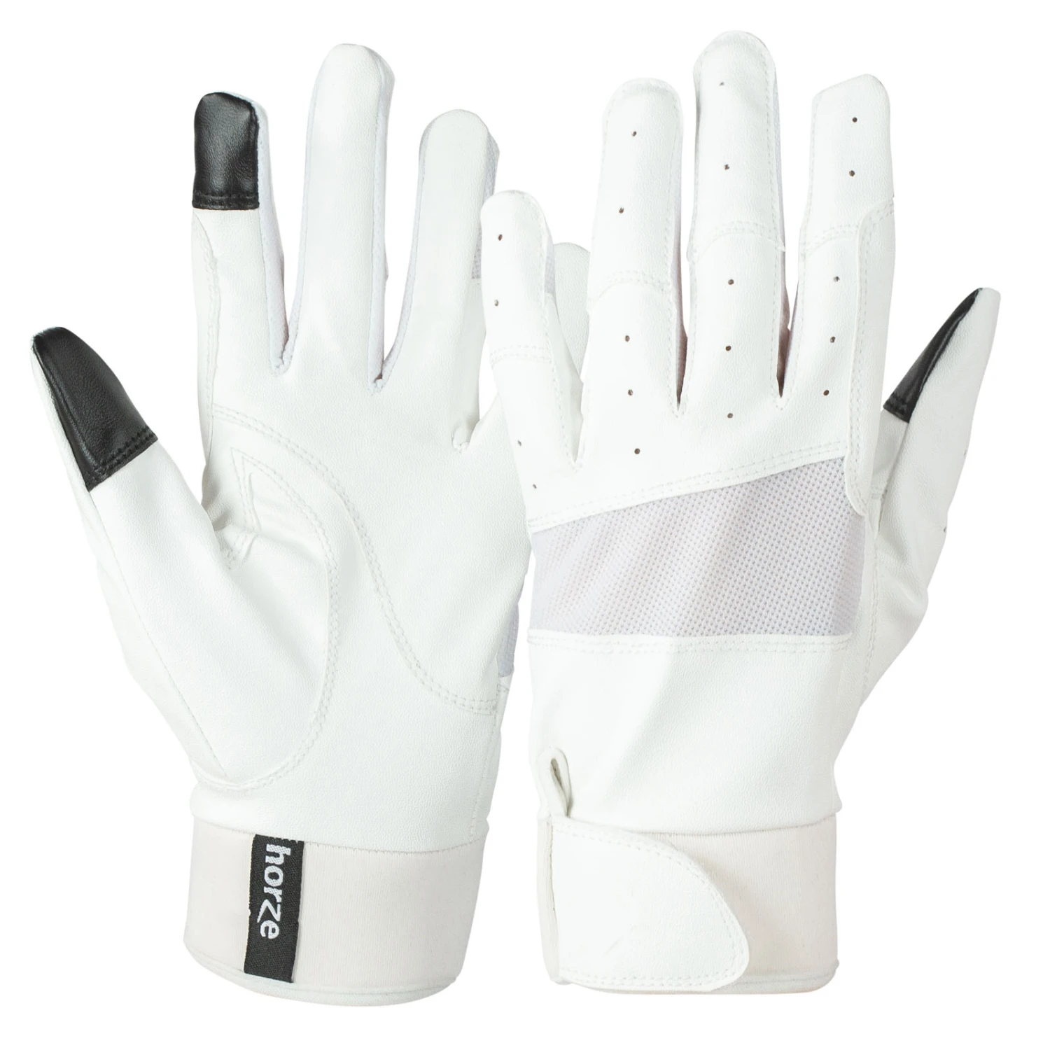 Diese Reithandschuhe aus weichem Kunstleder mit Netzeinsätzen bieten die ideale Belüftung. Die Bündchen aus weichem Neopren sind bequem und elastisch, und der verstellbare Riemen sorgt für die perfekte Passform. Synthetisches Leder auf der Handfläche sorgt für guten Halt, und das kleine Metall-Logo ist ein dezentes Detail.