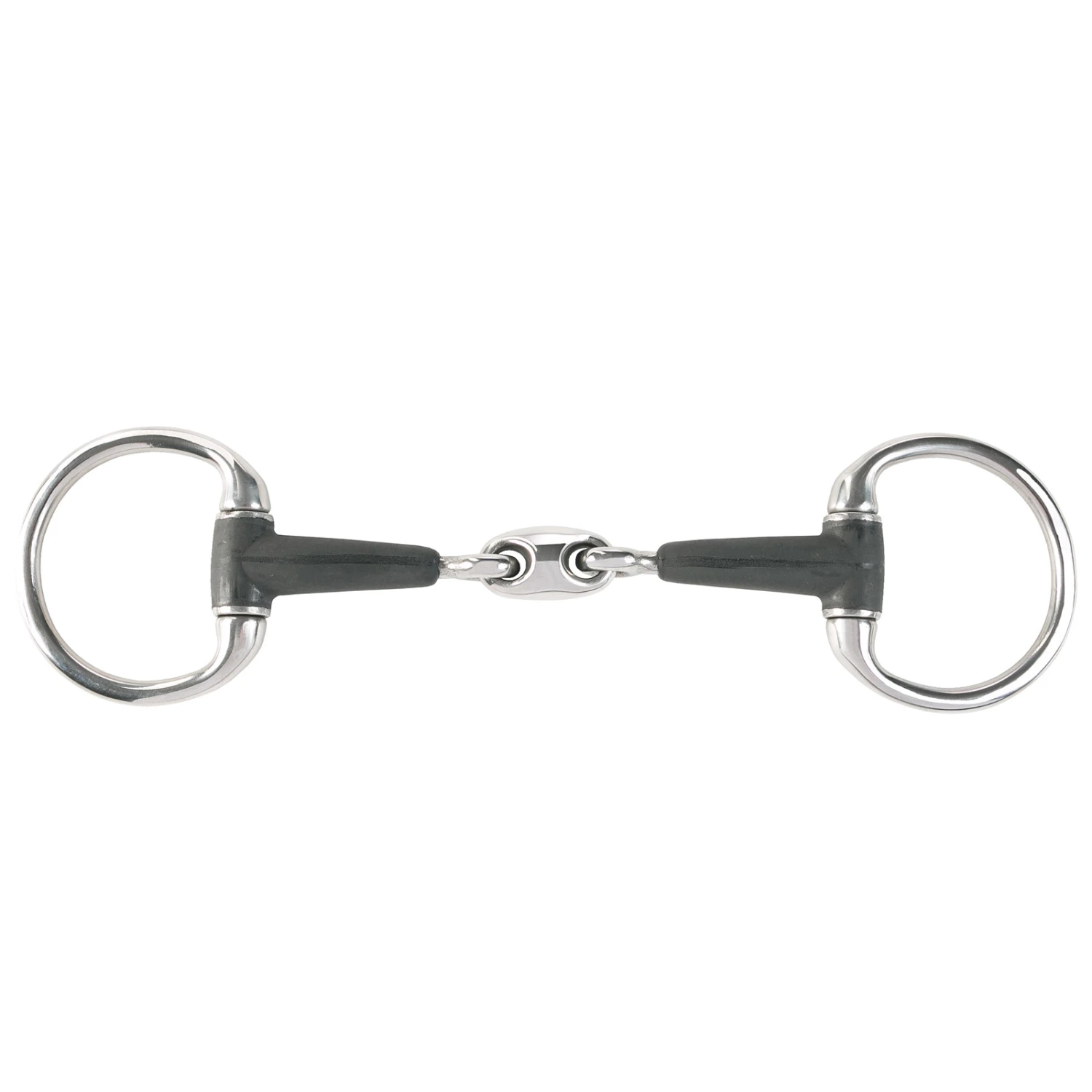 Olivenkopfgebisse sind sehr vielseitig einsetzbar. Diese mit Gummi überzogene Option schont die Maulwinkel und ein doppelt gebrochenes Mundstück sorgt für mehr Kontakt. Gummigebisse kommen empfindlichen Pferden zugute, da das Mundstück flexibel ist und das Gummi das Kauen und Speicheln anregt.