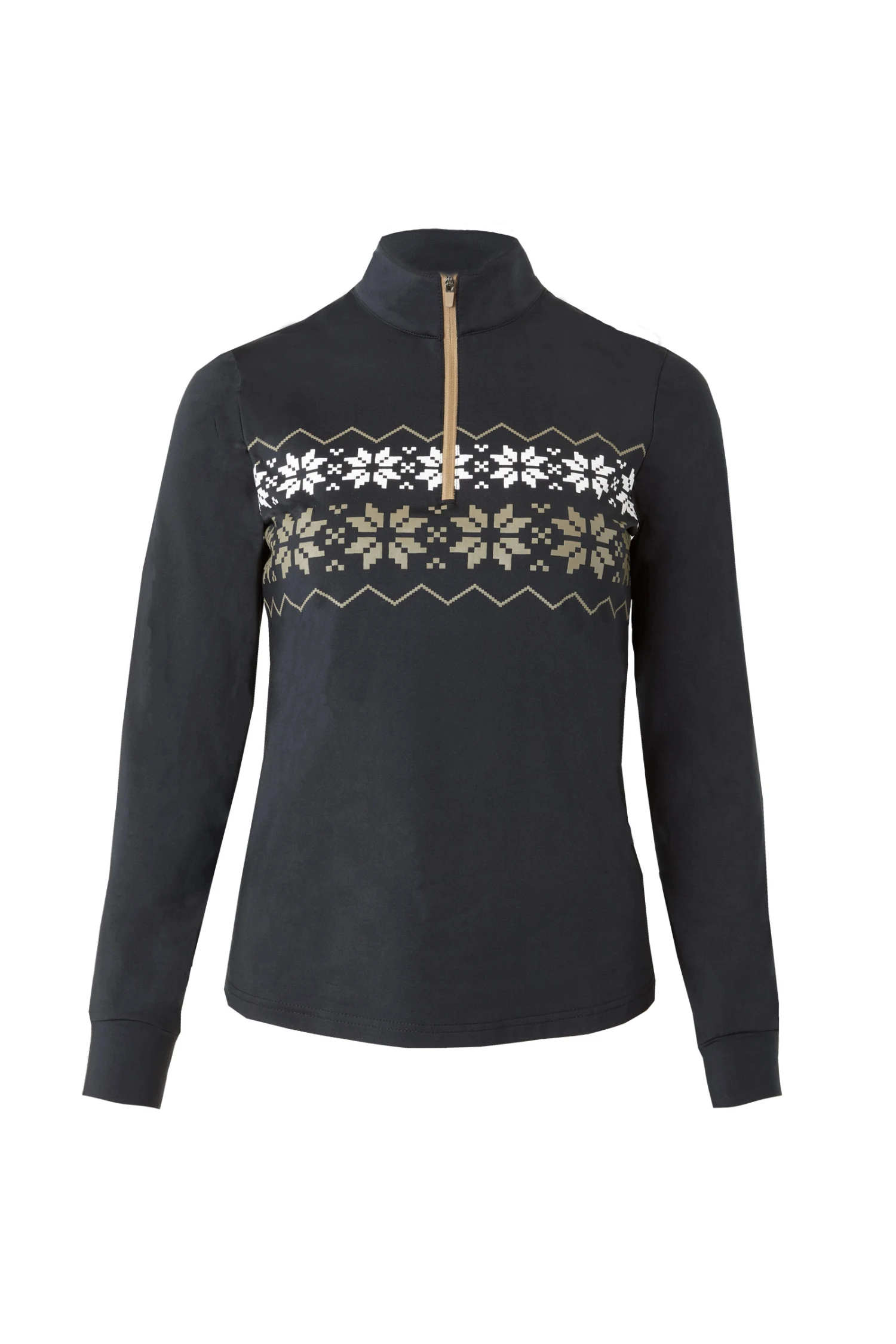 Das Horze Emily Trainingsshirt ist aus weichem, funktionellem Material gefertigt. Das gebürstete Futter und der hohe Halsausschnitt sorgen für zusätzliche Wärme. Das hübsche Schneeflockenmuster lässt sich leicht in deine Winterreitgarderobe integrieren. Kombiniere dieses Shirt mit unserer passenden Horze Emily Mütze, dem Schal und den Handschuhen für einen kompletten Look!