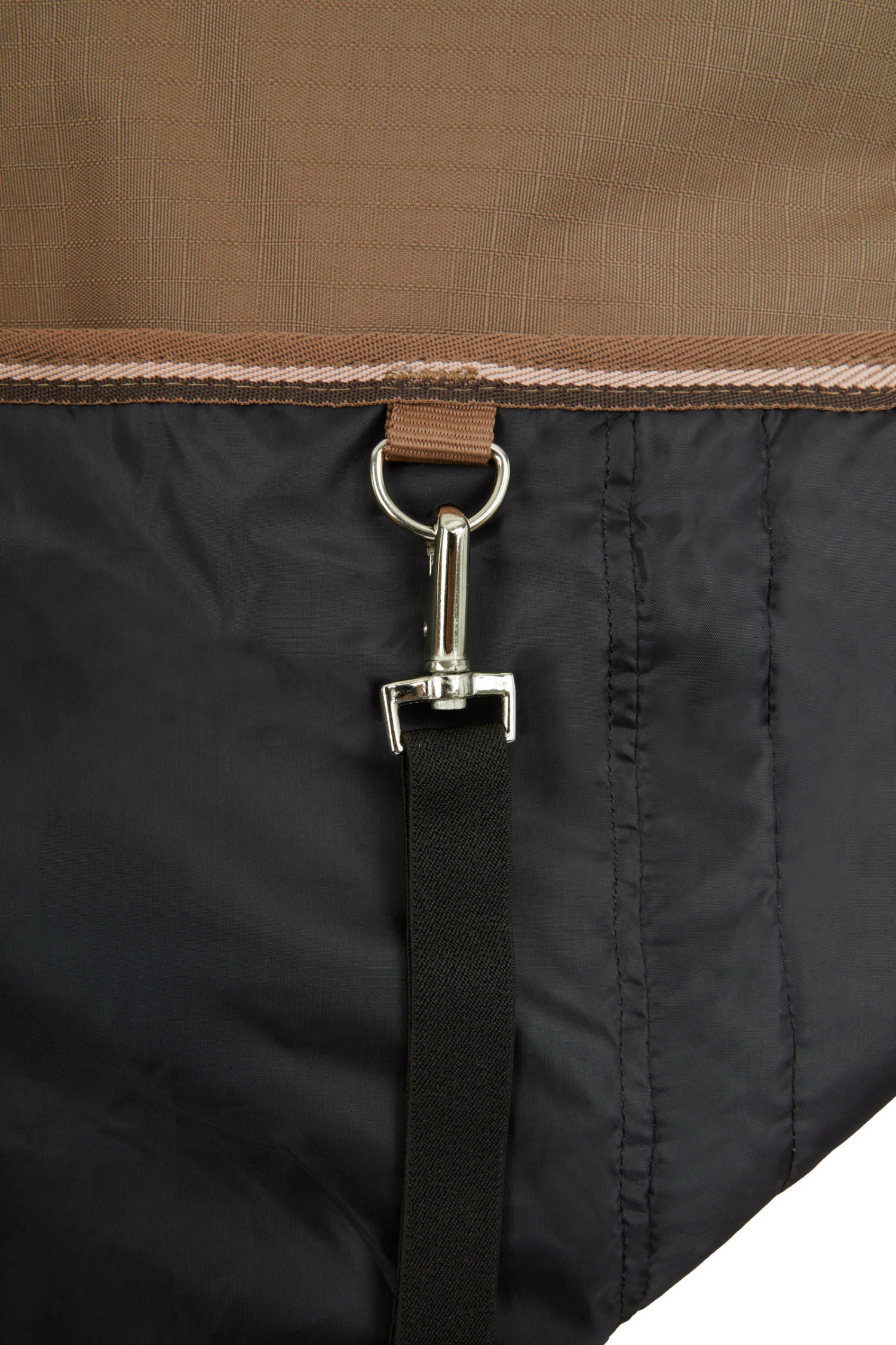Diese Decke mit Halsteil ist aus wasserdichtem, atmungsaktivem Material gefertigt. Der gute Sitz an Hals und Schultern macht sie bequem und die hohen Gehfalten bieten Bewegungsfreiheit, damit sich dein Pferd austoben kann und nicht eingeschränkt wird. Frontverschlüsse, Kreuzgurte und Beinschnüre halten die Decke sicher an ihrem Platz und verhindern Verrutschen.