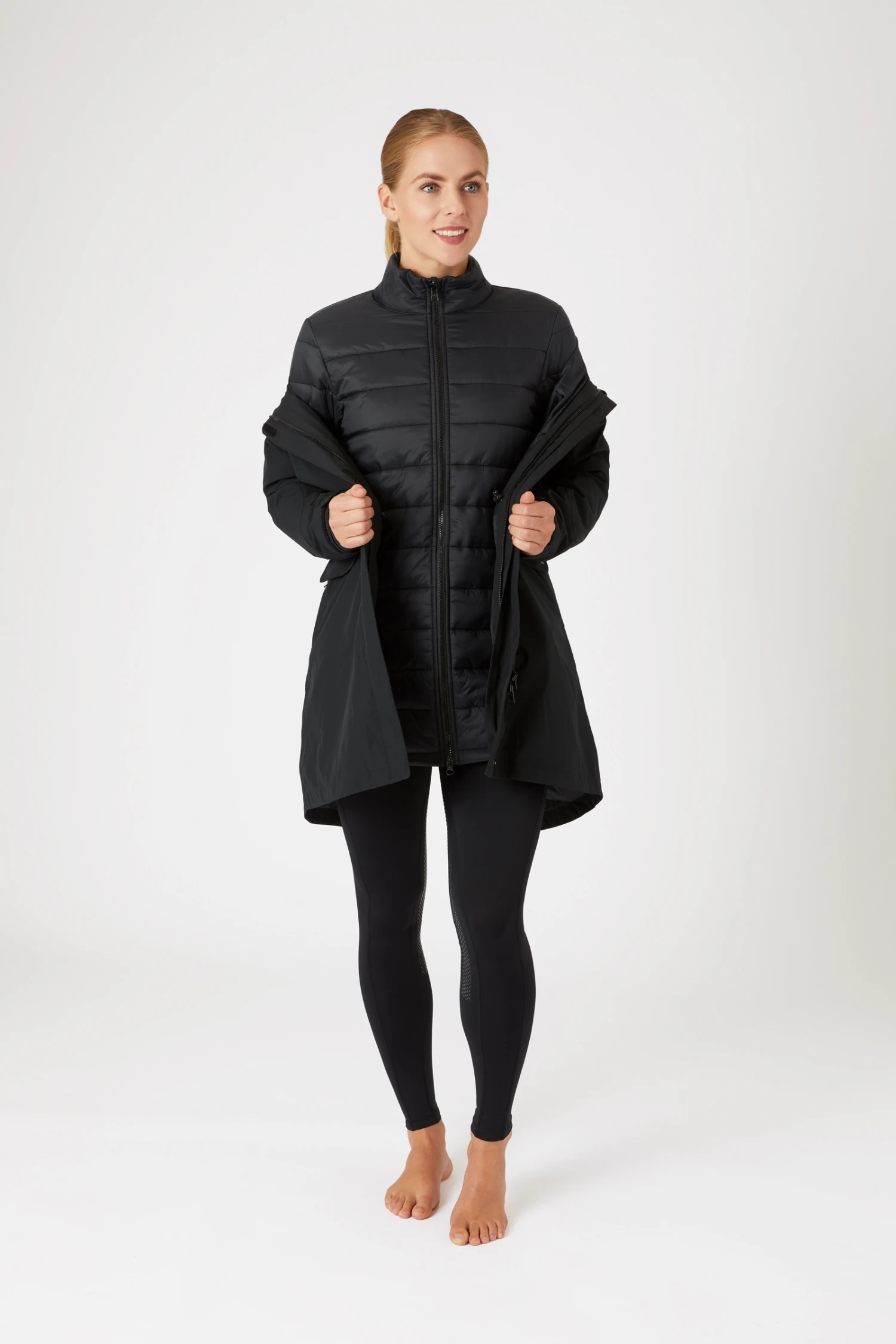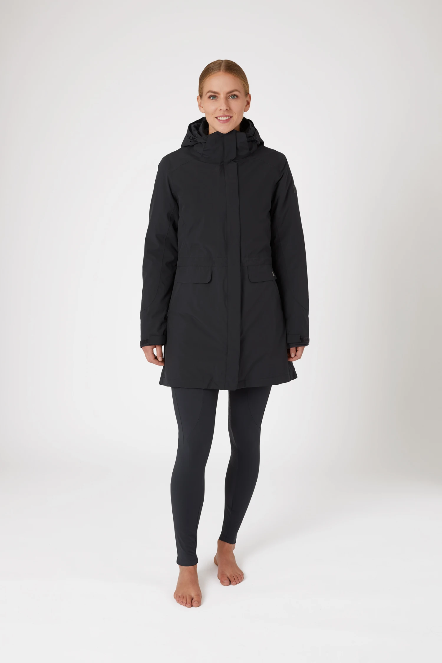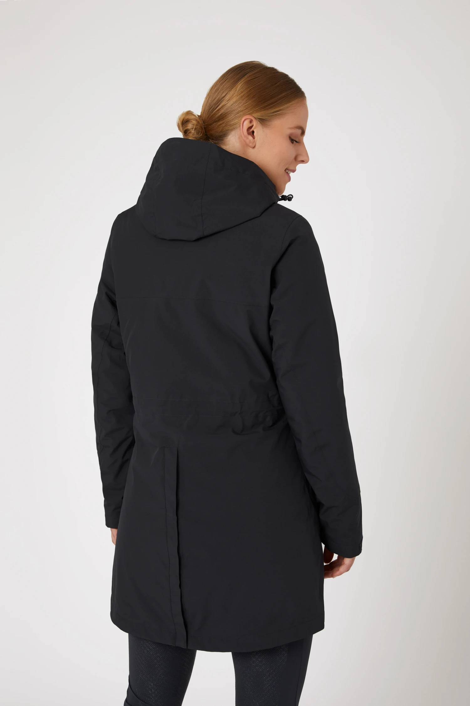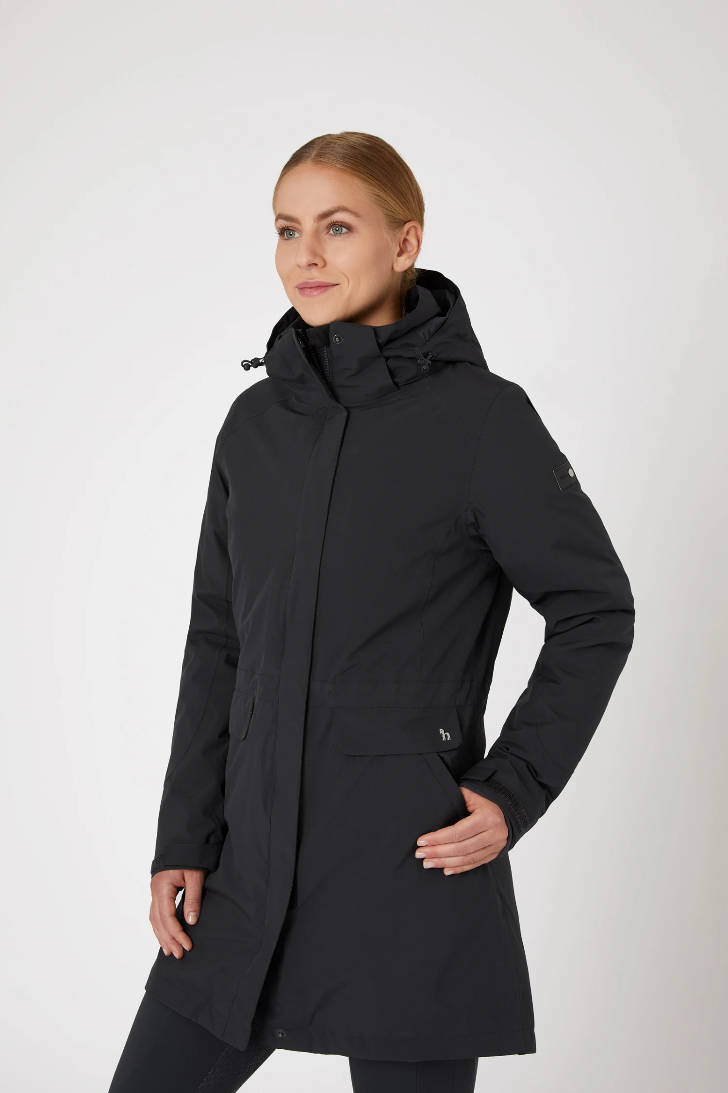 Unsere Horze Isabella Parka Jacke ist aus innerer und äußerer Jacke konzipiert. An Tagen, an denen du eine Regenjacke oder eine gefütterte Jacke brauchst, kann jede Jacke separat getragen werden. Zusammen ergeben sie einen warmen, wasserabweisenden Parka. Die Kapuze ist abnehmbar und du kannst die Taille für deine perfekte Passform einstellen. Zwei Reißverschlusstaschen bewahren deine Habseligkeiten sicher auf. Der Rückenschlitz mit Druckknöpfen ist beim Reiten bequem und funktionell. Die Innenjacke wird mit kleinen Schlaufen und Druckknöpfen im Nacken, an den Ärmelbündchen und mit den Reißverschlüssen an der Vorderseite an der Außenjacke befestigt.