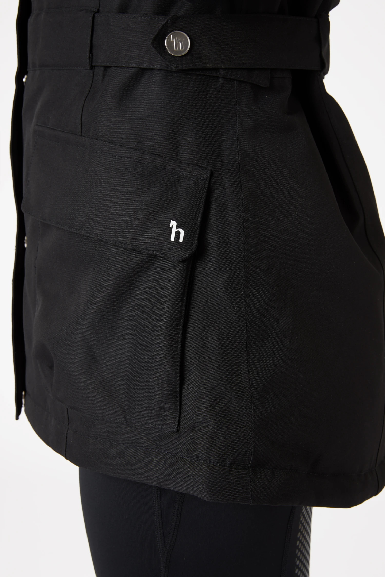 Unsere Jadine Winterjacke besteht aus strapazierfähigem, wasserdichtem Material. Sie ist leicht und gleichzeitig warm. Atmungsaktives Gewebe sorgt für gute Belüftung beim Reiten. Ein Reißverschluss auf der Rückseite bietet Platz beim Reiten. Die Kapuze ist abnehmbar. Die Reißverschlusstaschen sind perfekt für dein Telefon und Schlüssel.
