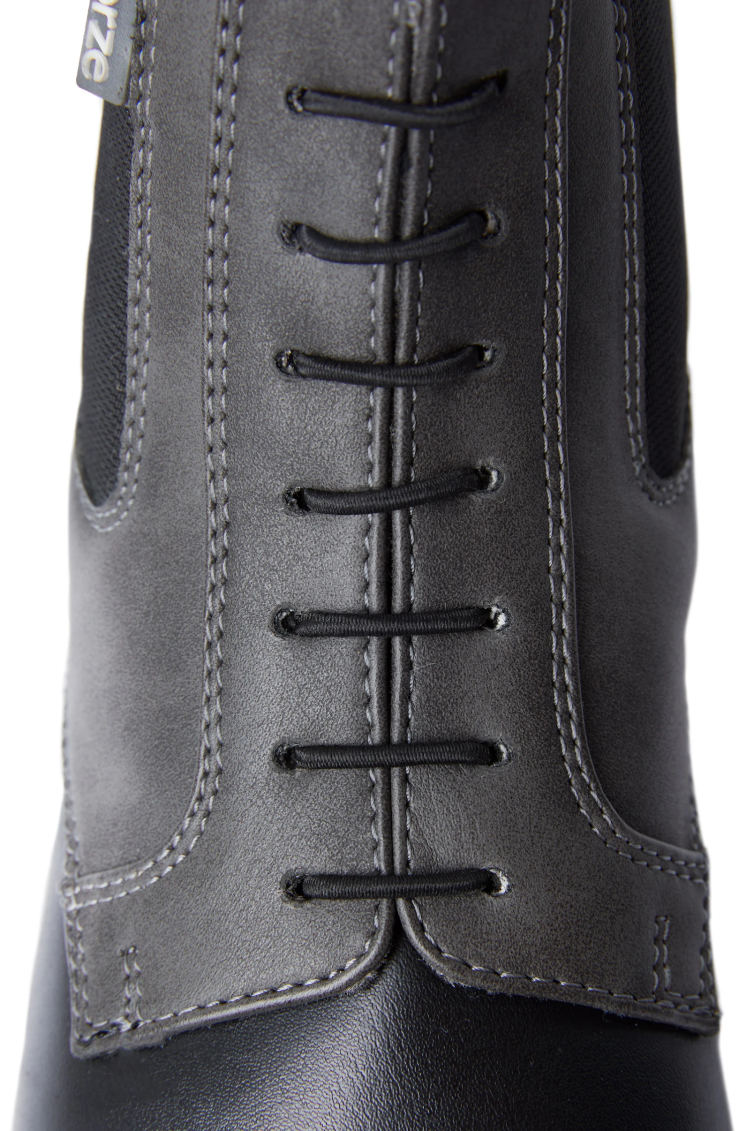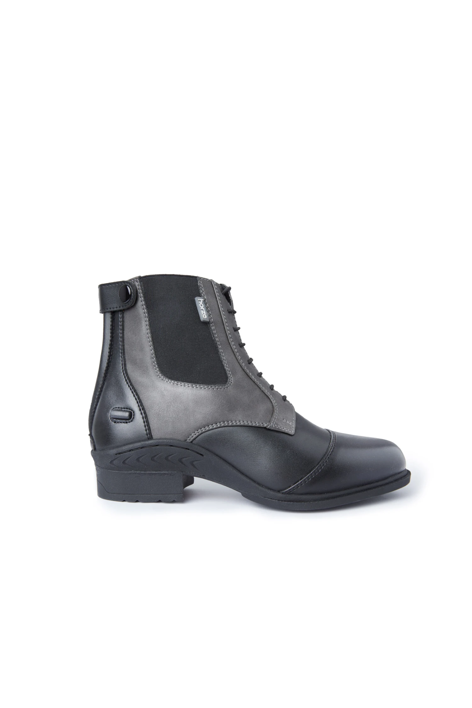 Die Horze Kilkenny Reitstiefeletten werden schnell zu einem festen Bestandteil deiner Reitgarderobe. Sie bestehen aus zweifarbigem Kunstleder, das bequem und leicht zu reinigen ist. Der Reißverschluss hinten und die elastischen Seiten bieten einen schnellen Einstieg, während die elastischen Schnürsenkel für einen klassischen Look sorgen. Die strapazierfähige Sohle hält dich sicher in den Steigbügeln und auf nassem Boden. Kombiniere sie mit Chaps für einen Reitstiefel-Look oder trage sie allein.