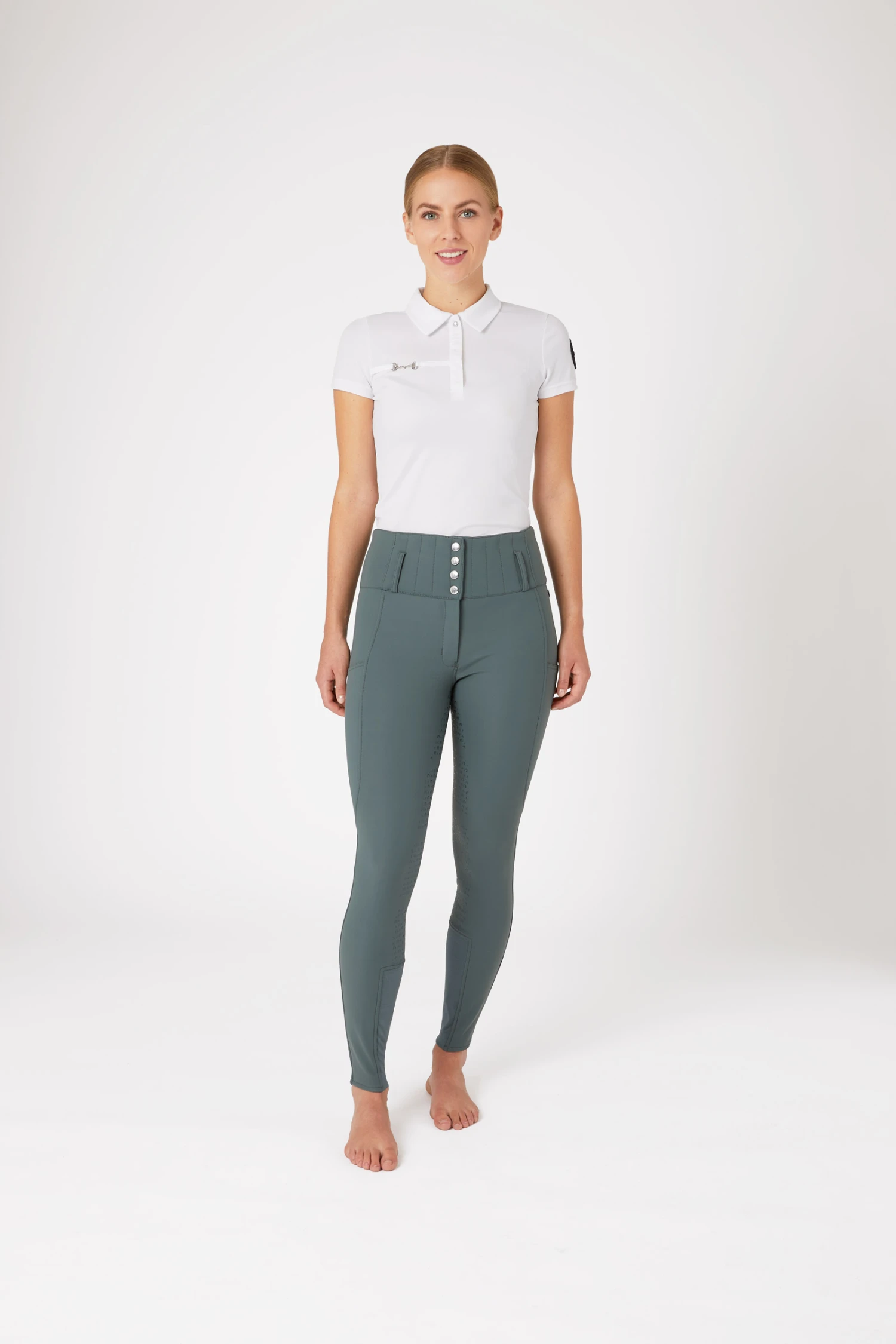 Unsere Horze Louisa Thermo-Reithose ist aus doppellagigem Material gefertigt, das dich auf winterlichen Ausritten und im Stall warm hält. Zwei tiefe Oberschenkeltaschen bieten Platz für dein Handy. Der superhohe Bund mit vier Knöpfen schmeichelt deiner Figur und macht deine winterliche Reitgarderobe stilvoll.