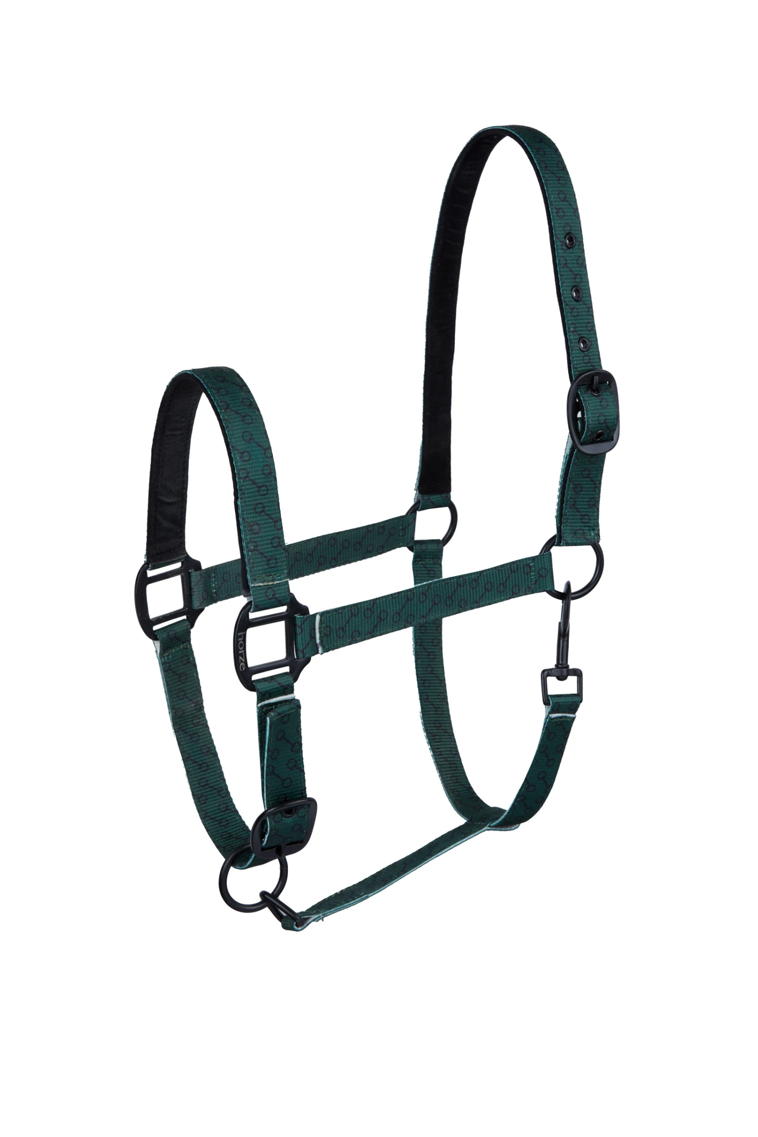 Das Horze Noir Halfter ist mit einem stilvollen Gebissprint bedruckt. Weiches PU-Wildleder an Nase und Genick sorgt für Komfort für dein Pferd. Eine verstellbare Schnalle am Genick sorgt für den perfekten Sitz. Der Karabinerhaken an der linken Backe schließt sicher. Kombiniere das Halfter mit dem Rest unserer Horze Noir Linie für einen kompletten Look!