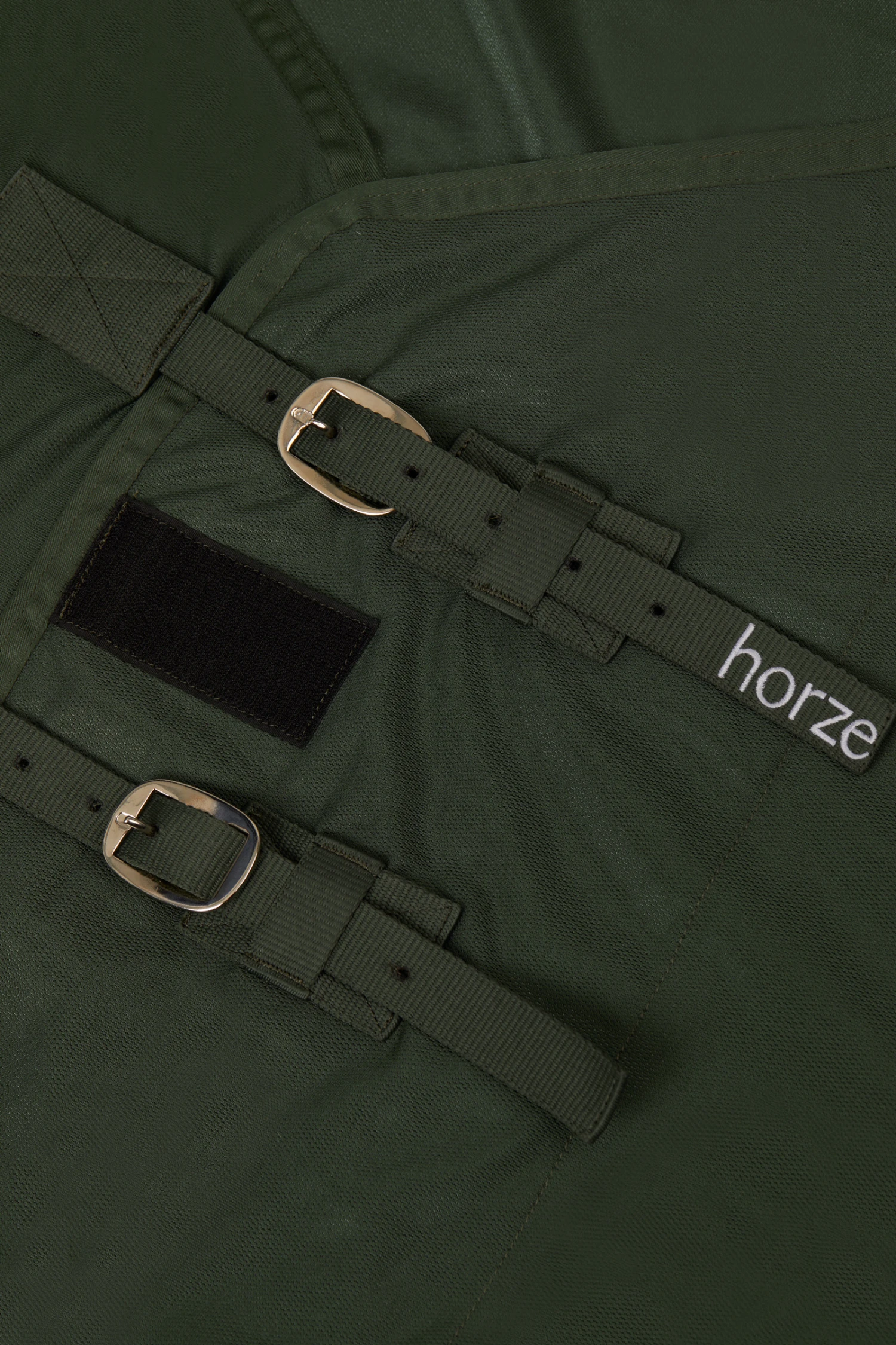 Unsere Horze Oslo Abschwitzdecke ist aus sehr dichtem Netzmaterial gefertigt. Weiches Kunstfell am Widerrist sorgt für Komfort. Zwei Frontschnallen, Kreuzgurte und ein Schweifriemen halten diese Decke an ihrem Platz. Die gedeckten Farben lassen sich leicht in deine Reitausrüstung integrieren. Kombiniere sie mit unseren passenden Horze Oslo Hufglocken, Halfter und Führstrick für ein komplettes Outfit!