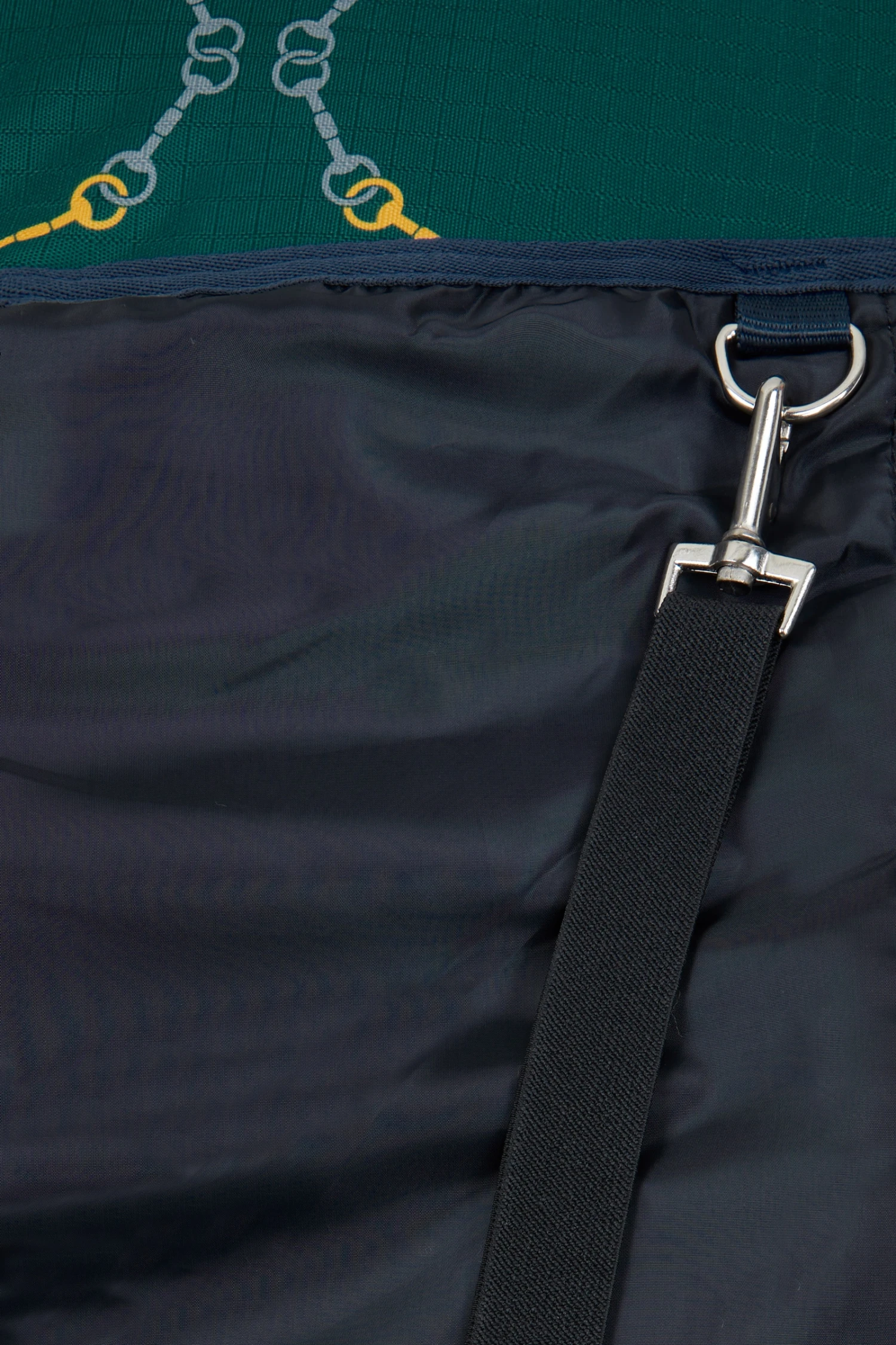 Decke dein Pferd mit dieser schönen Decke ein, um es vor Kälte und Regen zu schützen. Sie ist aus strapazierfähigem Stoff mit Gebissprint gefertigt und mit zwei Vorderschnallen, Beinriemen, Kreuzgurten und einem Schweiflatz ausgestattet. Hohe Gehfalten schränken die Bewegungsfreiheit deines Pferdes nicht ein. Das Halsteil schließt leicht mit Klettverschlüssen. Auch ohne Halsteil erhältlich.