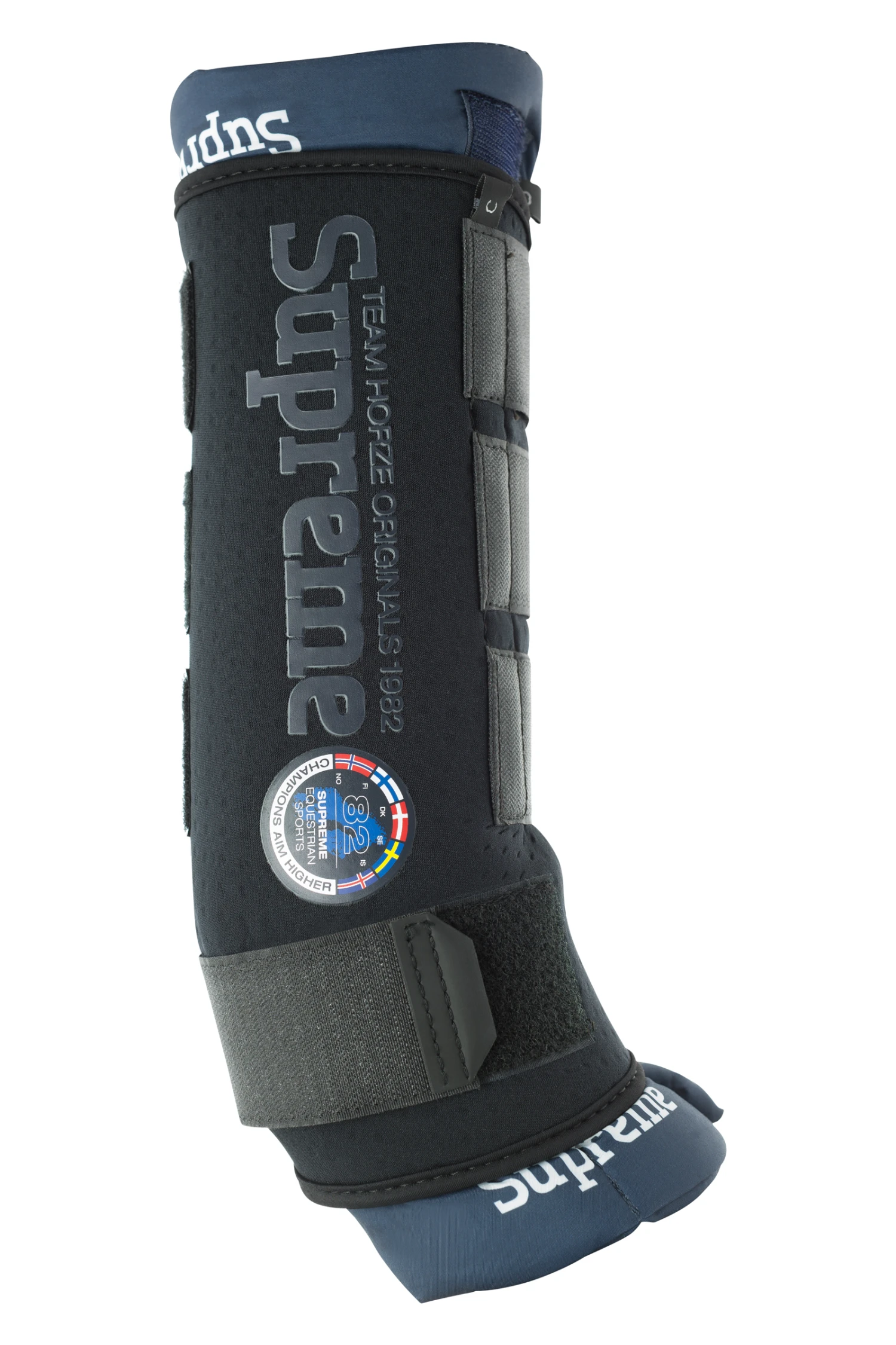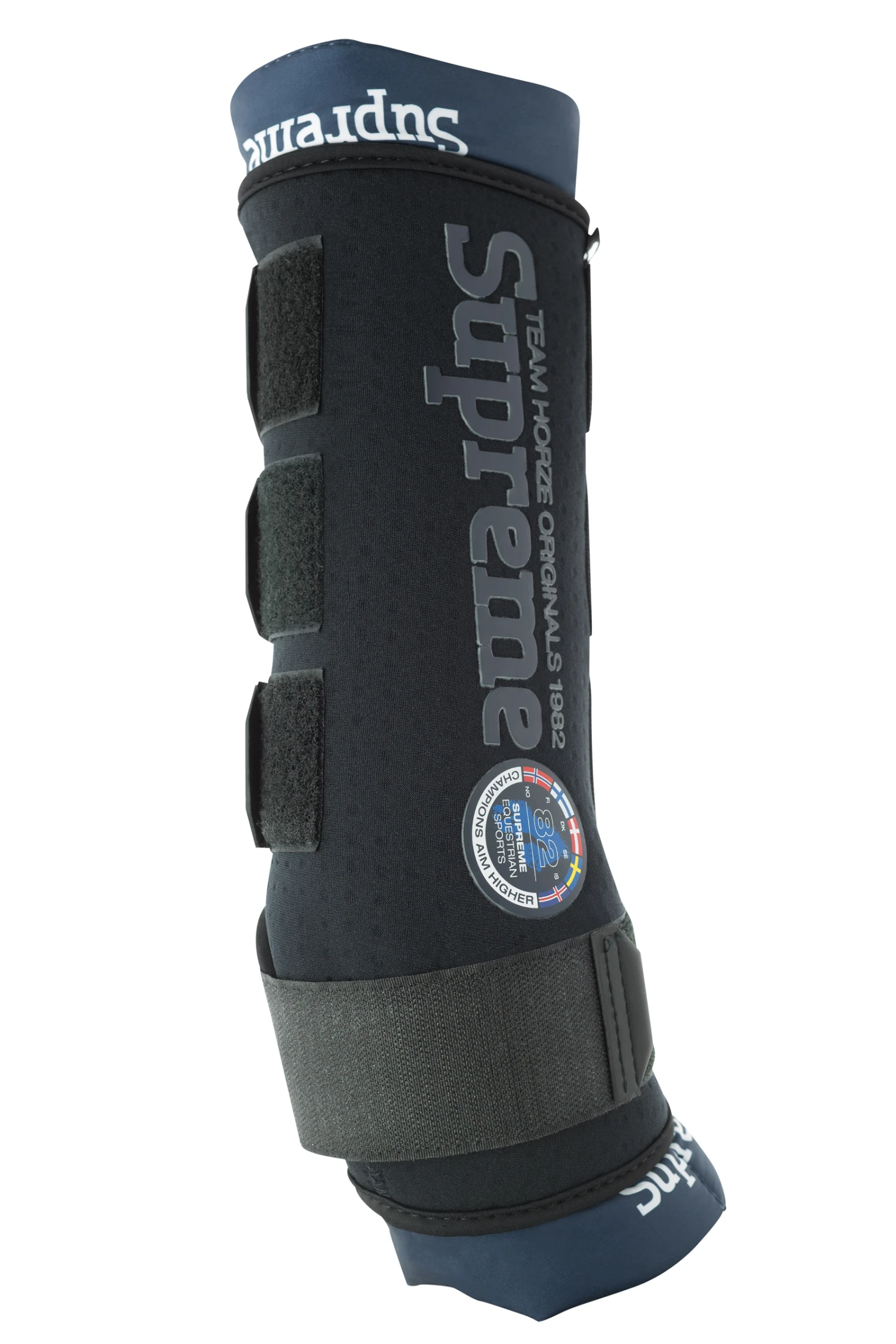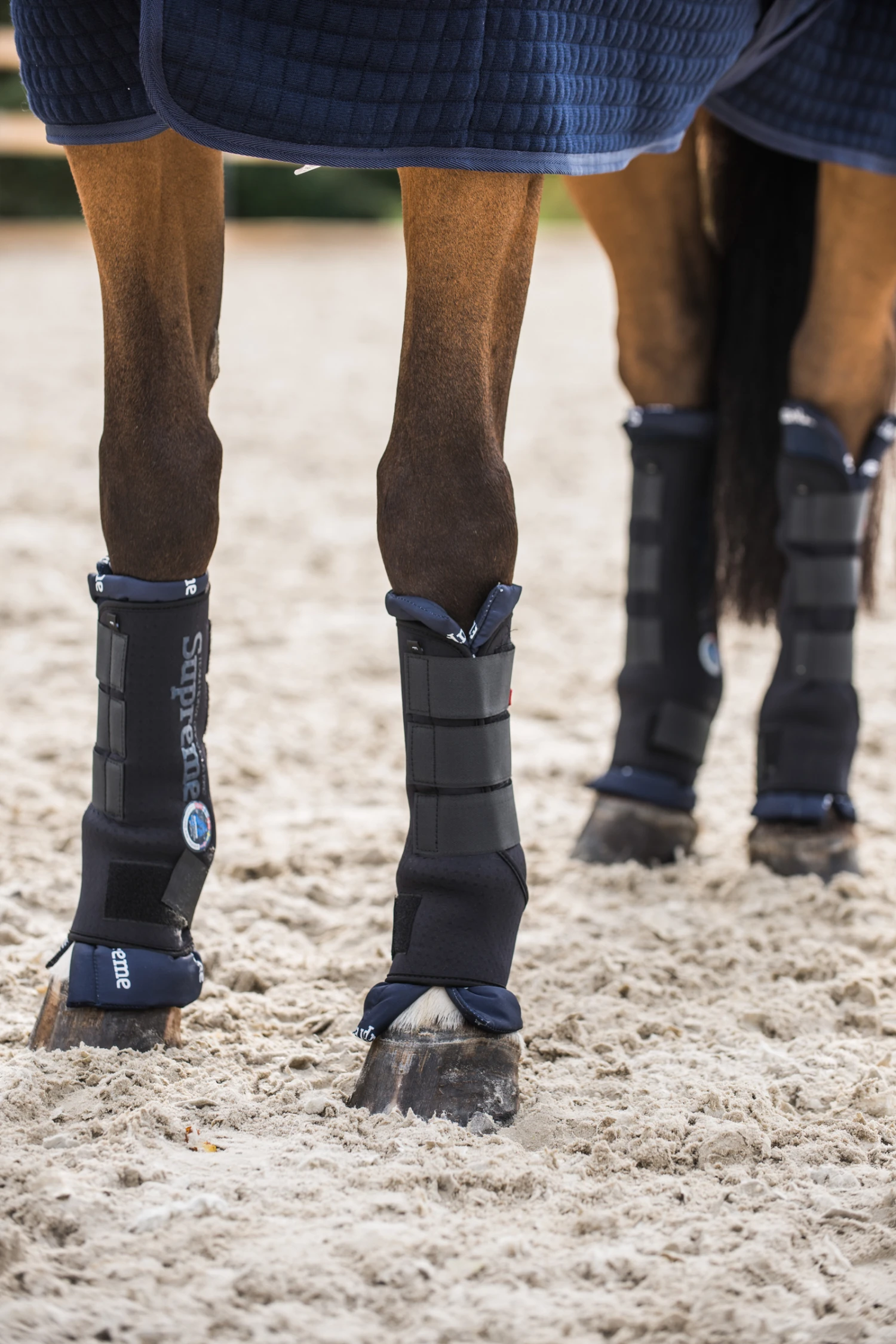 Die Horze Supreme Stallgamaschen PRO sind ein tolles Hilfsmittel nach einer harten Trainingseinheit. Die stabilisierenden Stallgamaschen bewirken, dass sich das Pferd schneller vom Training erholt. Horze Supreme Stallgamaschen PRO sind sowohl für die Hinterbeine als auch für Vorderbeine erhältlich. Die Gamaschen sind durch einen Klettverschluss einfach an- und abzulegen. Die innere Polsterung ist abnehmbar und kann in der Waschmaschine gewaschen werden.