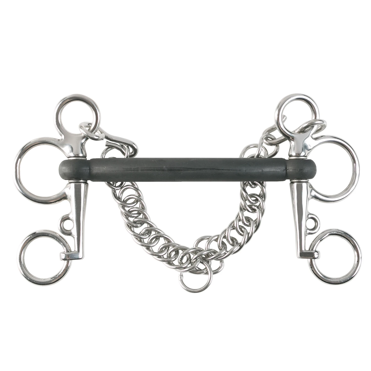 Das Stangengebiss im Pelham-Stil ist eine großartige Option für Pferde, die zusätzliche Kontrolle benötigen. Dieses mit Gummi ummantelte Gebiss ist schonend, aber effektiv um die Kopfhaltung und die Anlehnung zu verbessern. Gummigebisse kommen empfindlichen Pferden zugute, da das Mundstück flexibel ist und das Gummi das Kauen und Speicheln anregt. Das feste Mundstück sorgt dafür, dass sich der Druck auf die Zunge nicht verändert.