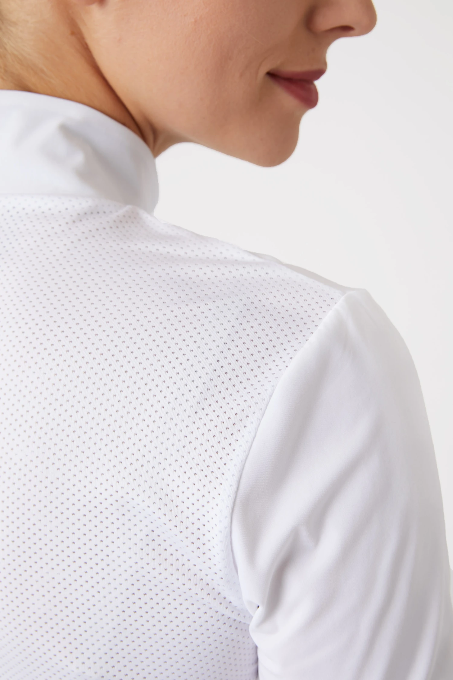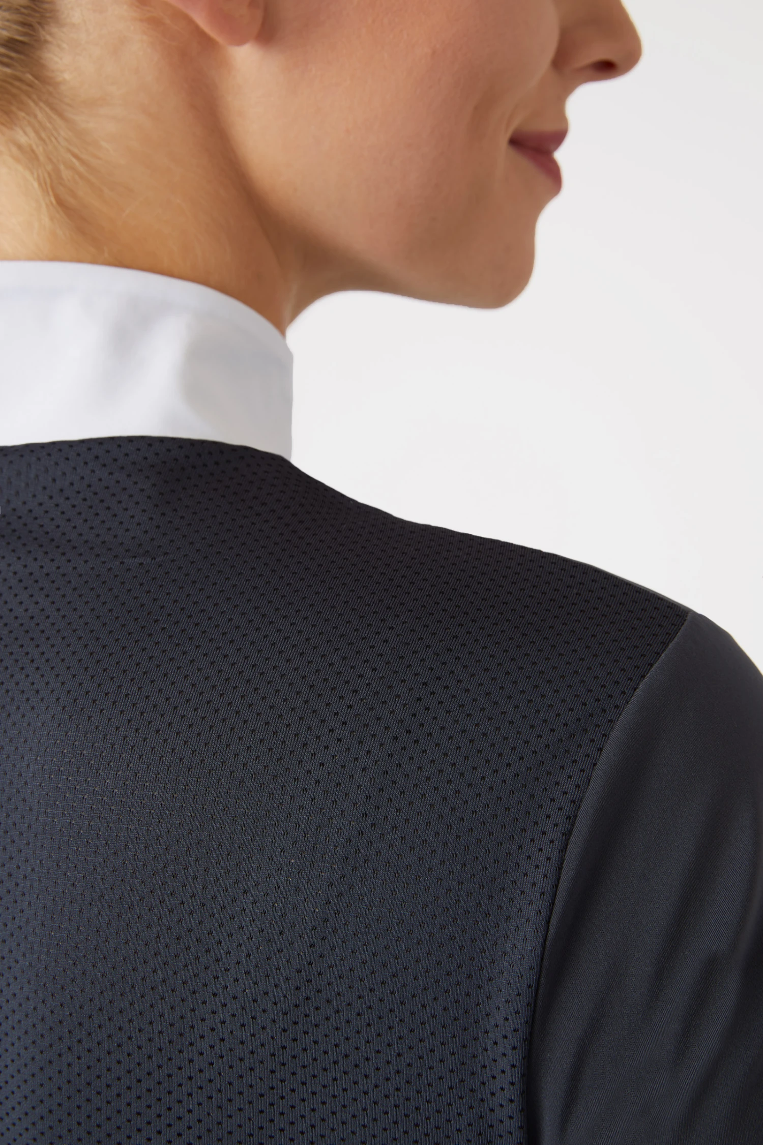 Der Kragen dieses wunderschönen Turniershirts ist ideal für das Turnier, kann aber auch in der Freizeit getragen werden. Das Mesh an Brust und Rücken ermöglicht zusätzliche Luftzirkulation und ultimative Funktionalität. Der Reißverschluss ist einfach in der Handhabung für einen schnellen Wechsel. Die Form ist sportlich und feminin, perfekt für eine Vielzahl von Anwendungen. Der Stoff ist weich und dennoch strapazierfähig, ideal für aktive Reiter.