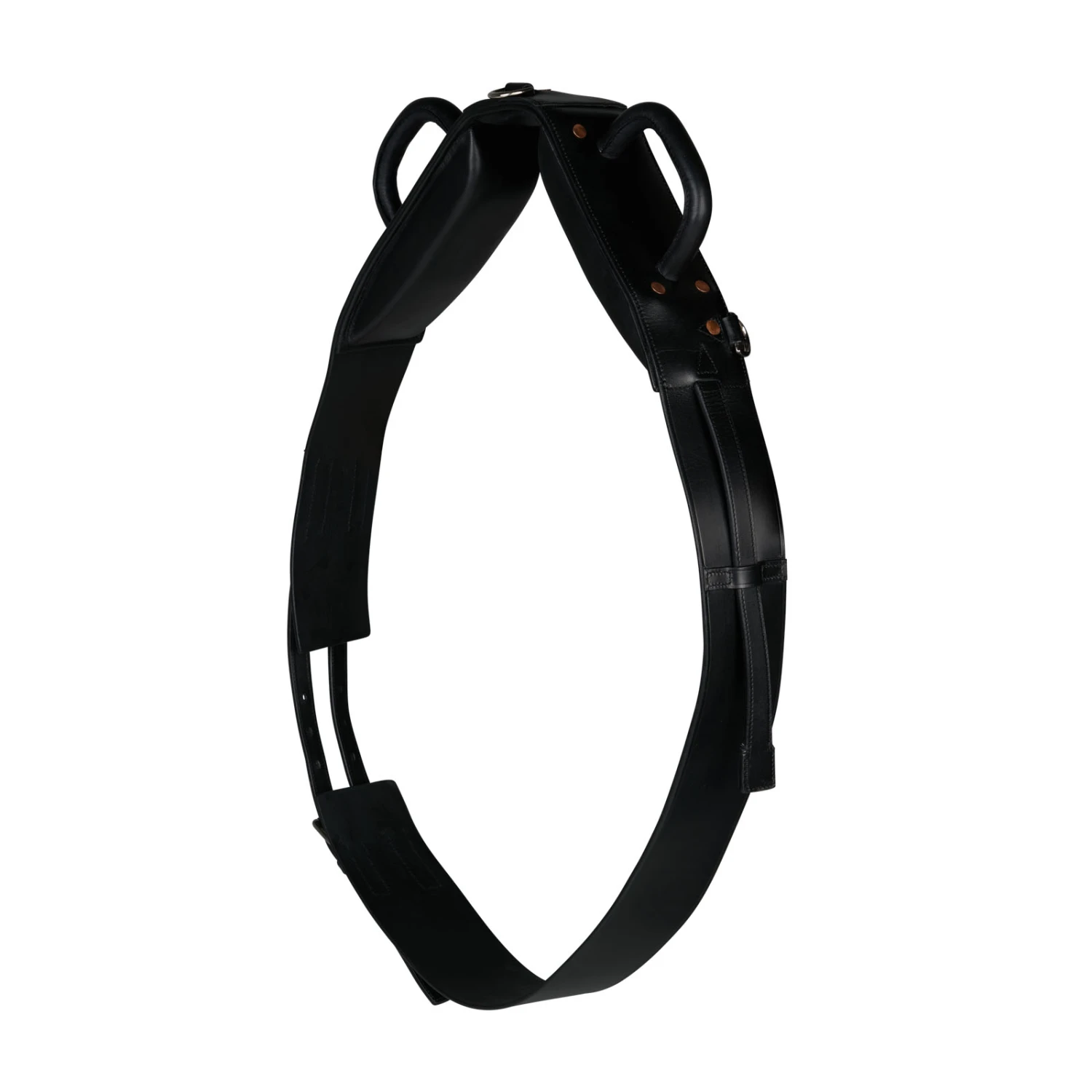 Dieser Voltigiergurt besteht aus festem Leder und ist mit zwei Griffen ausgestattet. Schnallen aus rostfreiem Stahl halten ihn an seinem Platz. An 3 D-Ringen kann leicht eine Longe angebracht werden.